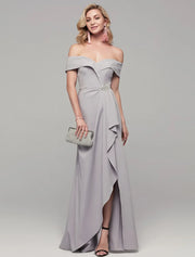Wholesa Sheath / Column Special Occasion Dresses Elegant & Luxurious Dress Wedding Guest Floor Length Short Sleeve Off Shoulder Spandex with Rhinestone Split Front - US 2 / UK 6 / EU 32