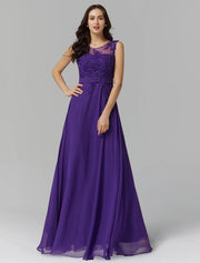 Wholesa A-Line Chinese Style Dress Wedding Guest Prom Floor Length Sleeveless Illusion Neck Chiffon V Back with Beading Appliques - Grape / US 2 / UK 6 / EU 32
