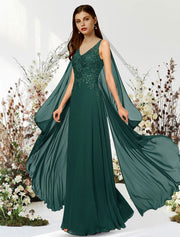 Wholesa A-Line Empire Elegant Engagement Formal Evening Dress V Neck Sleeveless Floor Length Chiffon with Sequin Appliques - US 2 / UK 6 / EU 32
