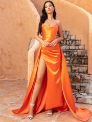 Wholesa A-Line Evening Gown Celebrity Style Dress Formal Sweep / Brush Train Sleeveless V Neck Satin with Crystals Slit