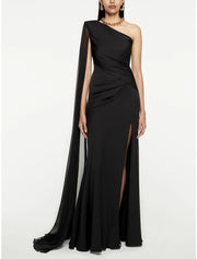 Wholesa A-Line Evening Gown Elegant Dress Formal Sweep / Brush Train Sleeveless One Shoulder Imitation Silk with Pleats Ruched Slit - US 2 / UK 6 / EU 32