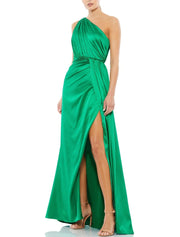 Wholesa A-Line Evening Gown Elegant Dress Formal Wedding Floor Length Sleeveless One Shoulder Charmeuse with Ruched Slit