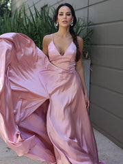 Wholesa A-Line Princess Silk like Satin Ruffles V-neck Sleeveless Dresses
