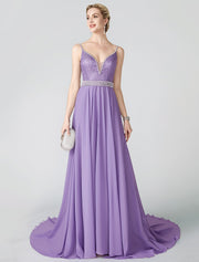 Wholesa Ball Gown Beaded & Sequin Holiday Cocktail Party Formal Evening Dress Plunging Neck Sleeveless Court Train Chiffon Metallic Lace with Sash / Ribbon Pleats Beading - US 2 / UK 6 / EU 32