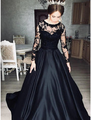 Wholesa Ball Gown Evening Gown Princess Dress Prom Wedding Party Floor Length Long Sleeve Jewel Neck Wednesday Addams Family Satin with Appliques - US 2 / UK 6 / EU 32