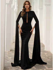 Wholesa Black Mermaid / Trumpet Evening Gown Elegant Dress Formal Fall Court Train Long Sleeve Jewel Neck Stretch Fabric with Pleats - Black / US 2 / UK 6 / EU 32