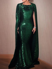 Wholesa Mermaid Evening Gown Sparkle Dress Wedding Guest Red Green Dress Sweep / Brush Train Sleeveless Jewel Neck Sequined with Sequin