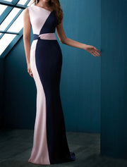 Wholesa Mermaid Party Dress Evening Gown Color Block Dress Formal Evening Sweep / Brush Train Sleeveless Jewel Neck Fall Wedding Guest Chiffon with Sleek