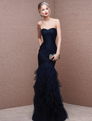 Wholesa Mermaid Party Dress Sexy Formal Evening Dress Strapless Sleeveless Floor Length Tulle with Ruched - US 2 / UK 6 / EU 32