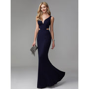 Wholesa Mermaid / Trumpet Cut Out Beautiful Back Elegant Prom Formal Evening Dress V Neck Sleeveless Floor Length Spandex with Pleats
