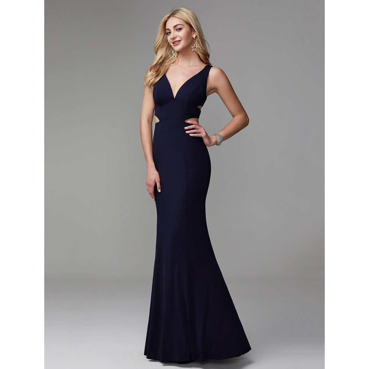 Wholesa Mermaid / Trumpet Cut Out Beautiful Back Elegant Prom Formal Evening Dress V Neck Sleeveless Floor Length Spandex with Pleats - US 2 / UK 6 / EU 32