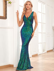 Wholesa Mermaid / Trumpet Evening Gown Backless Dress Evening Party Prom Floor Length Sleeveless V Neck Sequined Ladder Back with Glitter Sequin
