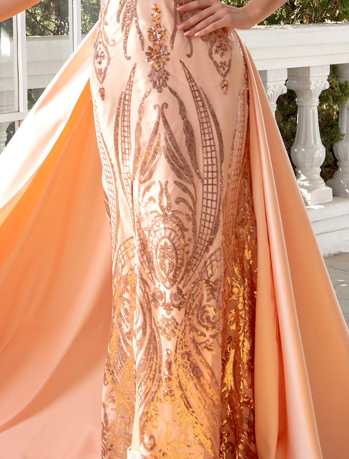 Wholesa Mermaid / Trumpet Evening Gown Luxurious Dress Wedding Party Floor Length Sleeveless V Neck Detachable Satin with Sequin Slit