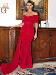 Wholesa Mermaid / Trumpet Evening Gown Maxi Dress Formal Floor Length Short Sleeve Off Shoulder Satin with Ruched - As picture1 / US 2 / UK 6 / EU 32
