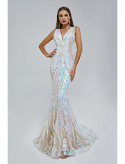 Wholesa Mermaid / Trumpet Evening Gown Sparkle & Shine Dress Engagement Formal Evening Court Train Sleeveless V Neck Sequined with Sequin - Ivory / US 2 / UK 6 / EU 32
