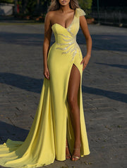 Wholesa Mermaid / Trumpet Evening Gown Sparkle & Shine Dress Formal Wedding Guest Court Train Sleeveless One Shoulder Stretch Chiffon with Sequin Slit
