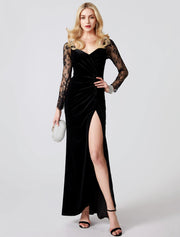 Wholesa Mermaid / Trumpet Minimalist Dress Holiday Cocktail Party Ankle Length Long Sleeve V Neck Jersey V Back with Pleats Appliques Split Front