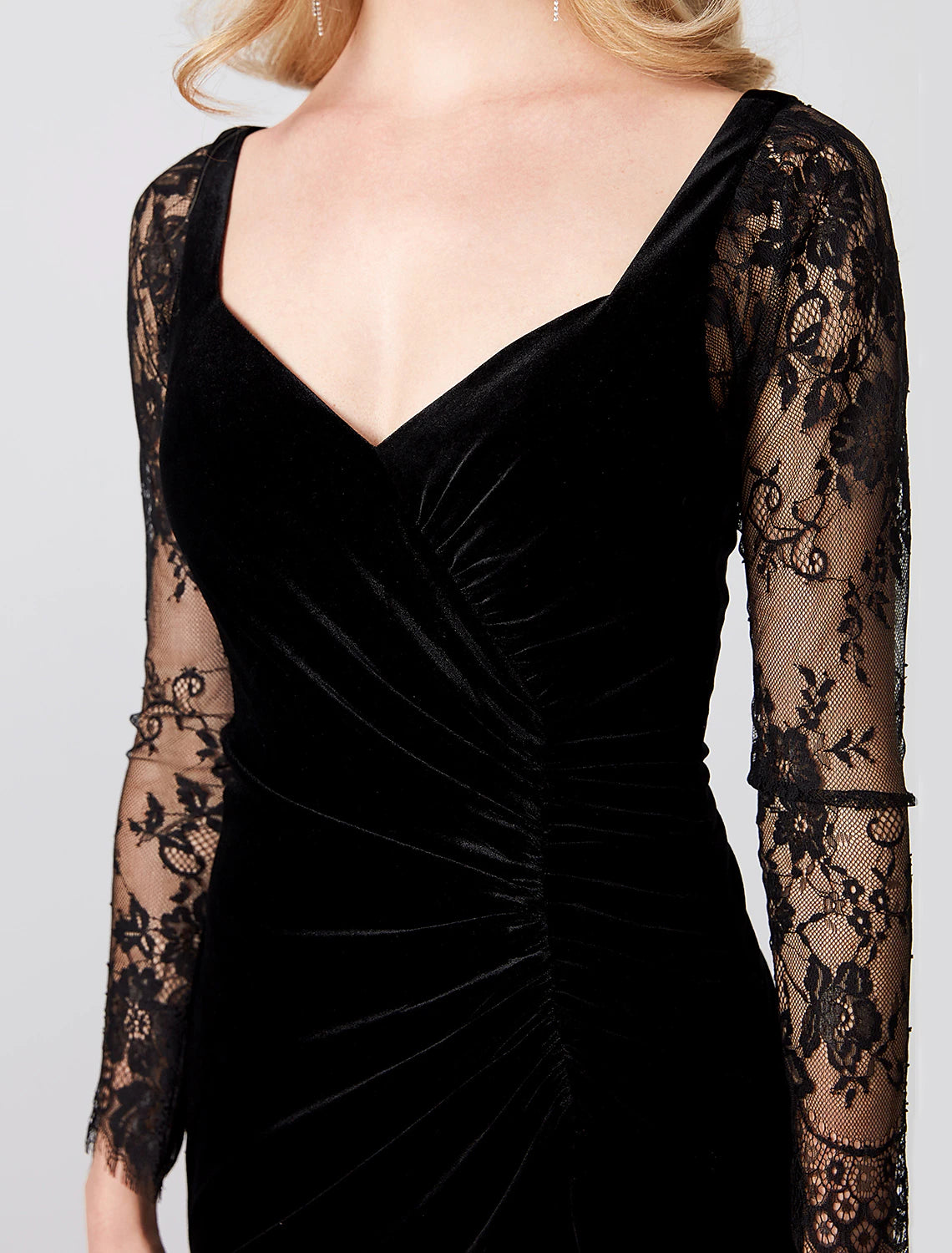 Wholesa Mermaid / Trumpet Minimalist Dress Holiday Cocktail Party Ankle Length Long Sleeve V Neck Jersey V Back with Pleats Appliques Split Front - US 2 / UK 6 / EU 32