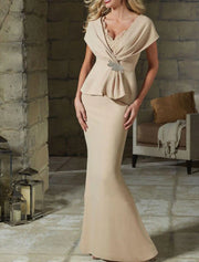 Wholesa Mermaid / Trumpet Peplum Elegant Wedding Guest Formal Evening Dress V Neck Short Sleeve Floor Length Jersey with Crystals Ruffles