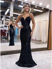 Wholesa Mermaid / Trumpet Prom Dresses Sparkle & Shine Dress Formal Wedding Party Sweep / Brush Train Sleeveless V Neck Sequined Backless with Sequin - Black / US 2 / UK 6 / EU 32