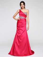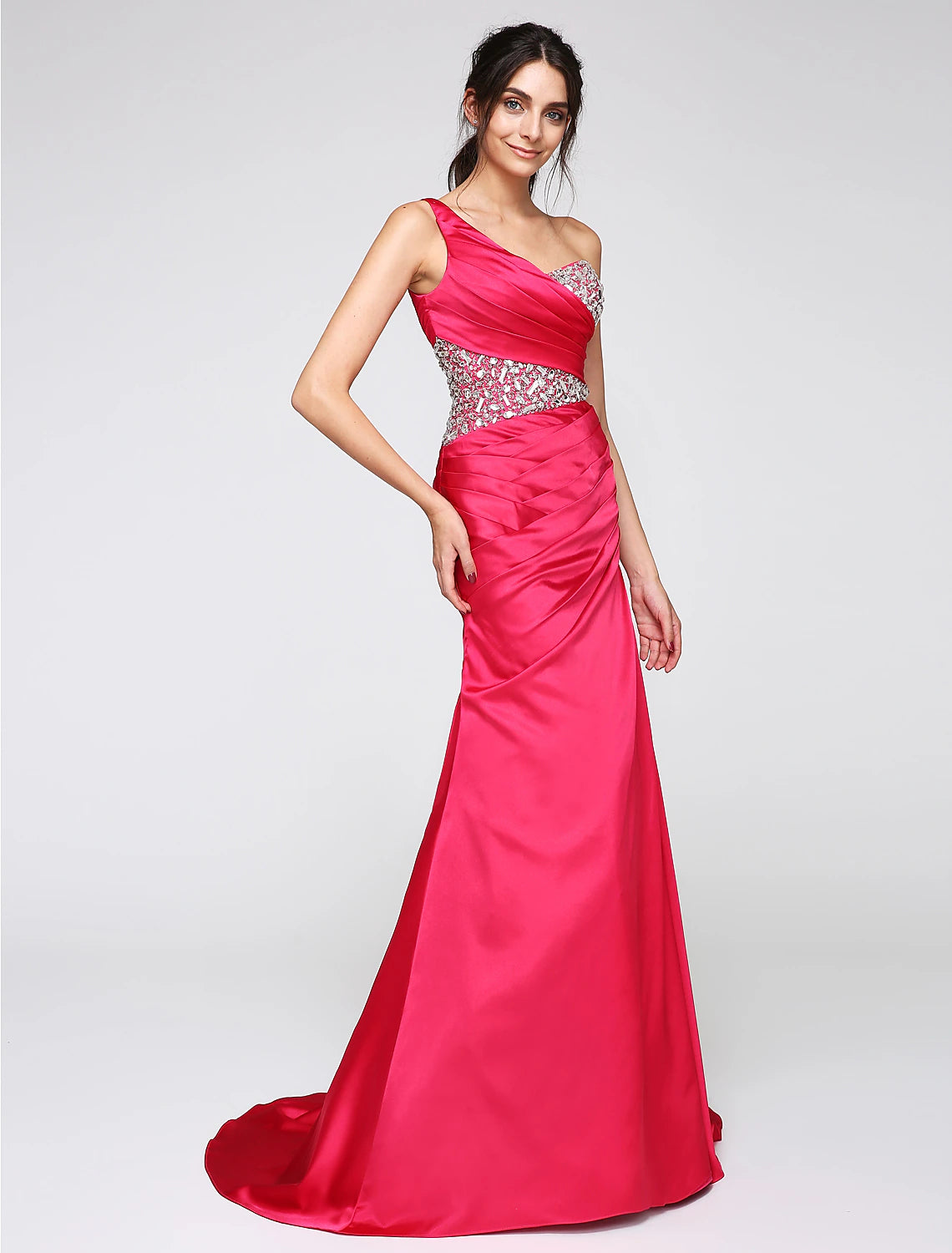 Wholesa Mermaid / Trumpet Sparkle & Shine Dress Formal Evening Sweep / Brush Train Sleeveless One Shoulder Satin with Criss Cross Crystals