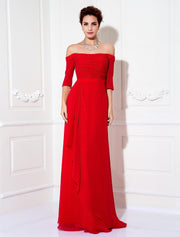 Wholesa Sheath / Column Minimalist Dress Wedding Guest Formal Evening Sweep / Brush Train Half Sleeve Off Shoulder Bridesmaid Dress Chiffon with Ruched Draping - Red