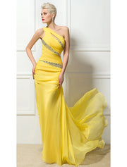 Wholesa Sheath / Column Sexy Engagement Formal Evening Dress One Shoulder Backless Sleeveless Sweep / Brush Train 30D Chiffon with Ruched Crystals Sequin