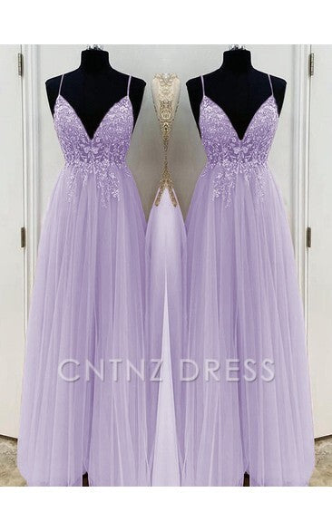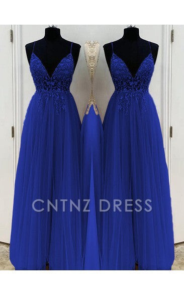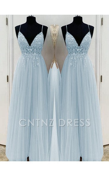 Wholesa A-Line/Elegant Spaghetti Straps Sleeveless Beading Tulle Floor-Length formal dresses Bridesmaid Dresses evening gown Prom Dress With Split - US 2 / UK 6 / EU 32 / as picture