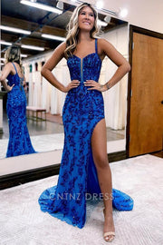 Wholesa Mermaid Sheath Corset Back Beading Sequin formal dresses Bridesmaid Dresses evening gown Prom Dress With Split - US 2 / UK 6 / EU 32 / Royal Blue