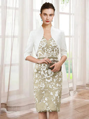 Wholesa Mother of the Bride Dress Elegant V Neck Knee Length Lace Stretch Length Sleeve with Appliques