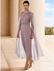 Wholesa Sheath / Column Mother of the Bride Dress Wedding Guest Elegant Scoop Neck Ankle Length Chiffon Sleeveless with Beading Ruching
