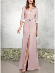 Wholesa A-Line Mermaid / Trumpet Mother of the Bride Dress Formal Wedding Guest Elegant V Neck Floor Length Chiffon Satin Half Sleeve with Sash / Ribbon Bow(s) Buttons