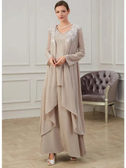 Wholesa A-Line Mother of the Bride Dress Elegant Jewel Neck Floor Length Polyester Long Sleeve with Appliques