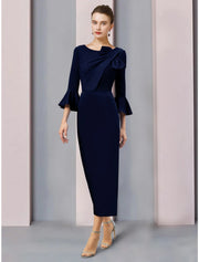 Wholesa A-Line Mother of the Bride Dress Wedding Guest Elegant Scoop Neck Ankle Length Stretch Fabric 3/4 Length Sleeve with Bow(s) Ruching Solid Color