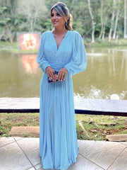 Wholesa A-Line/Princess Chiffon Ruffles V-neck Long Sleeves Floor-Length Mother of the Bride Dresses