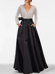 Wholesa A-Line Princess V-Neck Long Sleeves Floor-Length Mother Of The Bride Dresses
