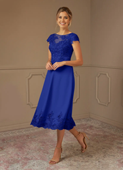 Wholesa A-Line Scoop Lace Lace Tea Length Royal Blue formal dresses evening dress Mother of the Bride Dresses