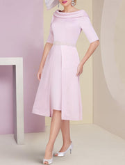 Wholesa A-Line Sheath / Column Mother of the Bride Dress Formal Wedding Guest Elegant Bateau Neck Knee Length Italy Satin Half Sleeve with Sash / Ribbon