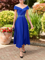 Wholesa A-Line Sweetheart Off-The-Shoulder Sleeveless Tea-Length Mother Of The Bride Dresses With Appliques