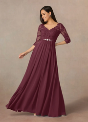 Wholesa A-Line V-Neck Lace Chiffon formal dresses evening gown Mother of the Bride Dresses
