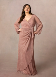Wholesa A-Line V-Neck Long Sleeve Ruched Rose Gold Mother of the Bride Dresses