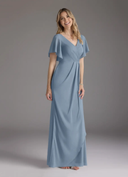 Wholesa Mermaid V-Neck Pleated Chiffon Dusty Blue formal dresses evening dress Mother of the Bride Dresses