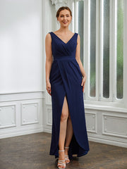Wholesa Sheath/Column Stretch Crepe Ruched V-neck Sleeveless Floor-Length Mother of the Bride Dresses