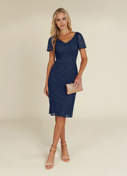 Wholesa Sheath V-Neck Lace Short Sleeve Dark Navy Mother of the Bride Dresses - US 2 / UK 6 / EU 32