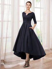 wholesale  A-Line Mother of the Bride Dress Elegant High Low V Neck Asymmetrical Tea Length Satin Half Sleeve with Beading