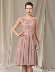 wholesale A-Line Mother of the Bride Dress Elegant Jewel Neck Knee Length Chiffon Lace Sleeveless with Pleats Appliques - US 2 / UK 6 / EU 32
