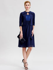 wholesale A-Line / Two Piece Jewel Neck Knee Length Chiffon / Corded Lace Mother of the Bride Dress with Sash