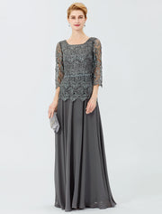 wholesale   Ball Gown A-Line Mother of the Bride Dress Formal Classic & Timeless Elegant & Luxurious Elegant Scoop Neck Floor Length Chiffon Corded Lace 3/4 Length Sleeve with Sashes / Ribbons Beading