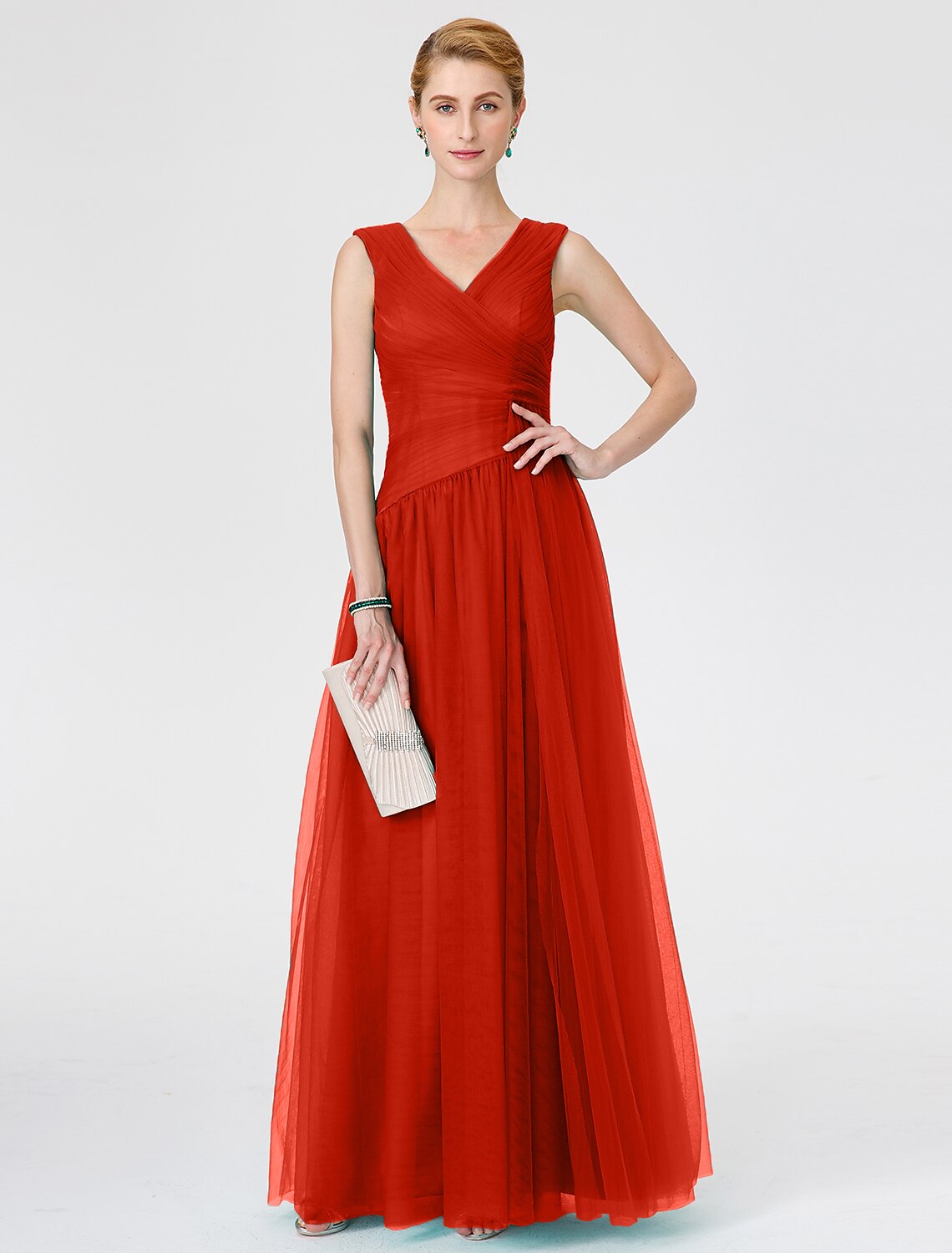 wholesale Princess Mother of the Bride Dress Elegant V Neck Floor Length Tulle Sleeveless No with Criss Cross Ruched - Hunter Green / US 2 / UK 6 / EU 32