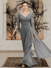 wholesale  Sheath / Column Mother of the Bride Dress Elegant V Neck Floor Length Chiffon Half Sleeve with Beading Side-Draped